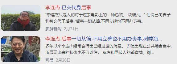看透生死的李连杰,透露自己早已向妻子交代了后事,“后事一切从简,不用立碑也不用办丧事,树葬海葬都无所谓”。